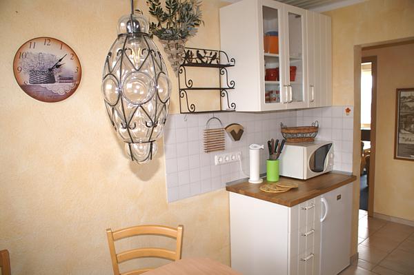 - Küche mit Küchenzeile (Kühlschrank mit Eisfach, Herd mit Backröhre, Mikrowelle, Kaffeemaschine, Geschirrspüler, Wasserkocher, Toaster etc.) und Essplatz