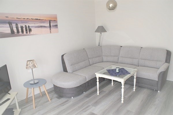 - Wohnzimmer mit Sat/TV, Schlafcouch als Aufbettung für 1 Person (1,20 m breit) und Ausgang zum Balkon
